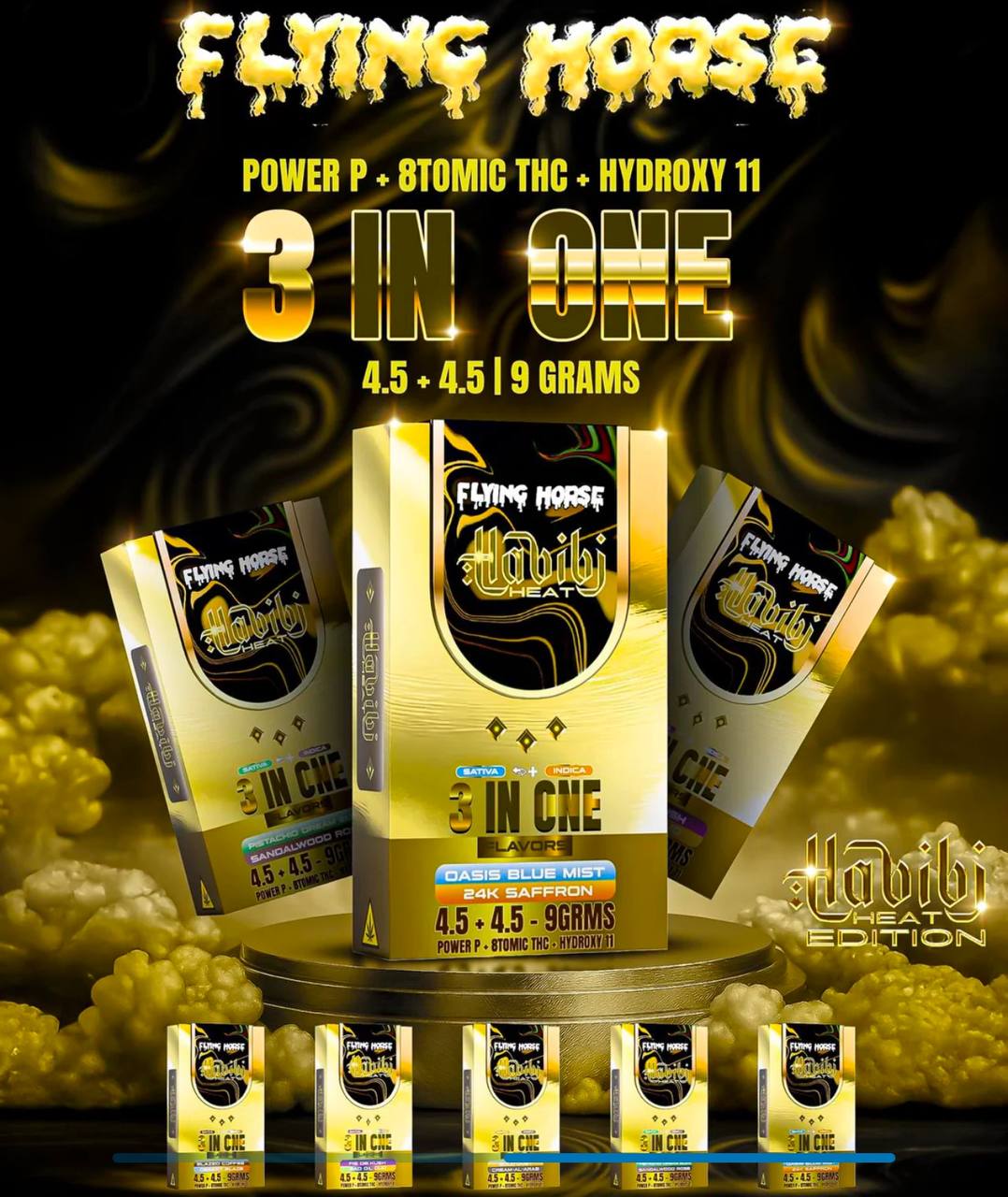 The Flying Horse Cart Habibi Heat 9G Disposable – 3 Flavors in 1 is a premium multi-flavor device designed to deliver a warm, exotic, and flavor-rich experience.